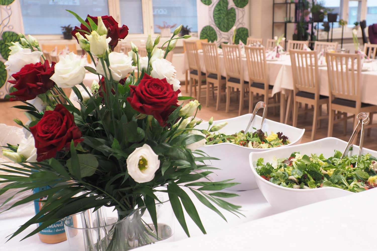 Meiltä voit myös tilata pitopalvelun ja vuokrata tilan omaa tilaisuuttasi varten.